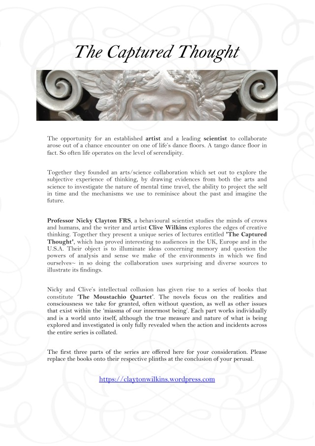 AN EXHIBITION HIGHLIGHTING THE WORK OF THE CAPTURED THOUGHT~ and presenting the first three novels in THE MOUSTACHIO QUARTET series.