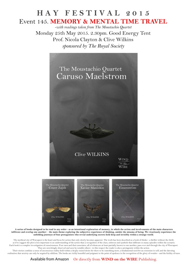 This entry was posted in Chris Loades, Clive Wilkins, Hay Festival 2015, Prof. Nicky Clayton, Uncategorized, University of Cambridge and tagged BBC Private Passions, BBC Radio 3, Bob Holt, Clare College Cambridge, Clive Wilkins, Dept. of Psychology University of Cambridge, Florida University, Hay Festival 2015, Joan Frosch, Moustachio Quartet, Nicky Clayton, Nita Little, Queen Mary, The Captured Thought, The Royal Society, University of London, Uppingham Rutland, WIND on the WIRE Publishing, WQEIC. Bookmark the permalink.