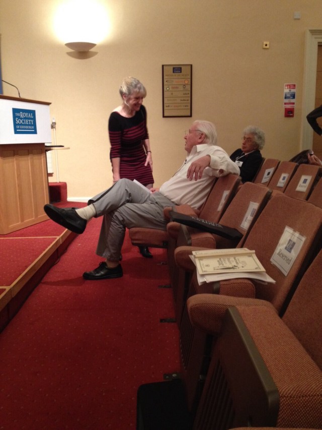 Above. Speakers dinner at The Royal Society of Edinburgh. Below. Post dinner fun~ Susan Attenborough, Sir David, Nicky Clayton and Clive Wilkins relax after a successful day.
